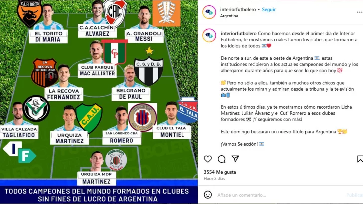 Mientras Milei quiso hacer ver que todos los jugadores de la Selección “juegan en clubes que son Sociedades Anónimas Deportivas”, desde Interior Futbolero recordaron que los jugadores son “todos campeones del Mundo formados en clubes sin fines de lucro de Argentina”.
