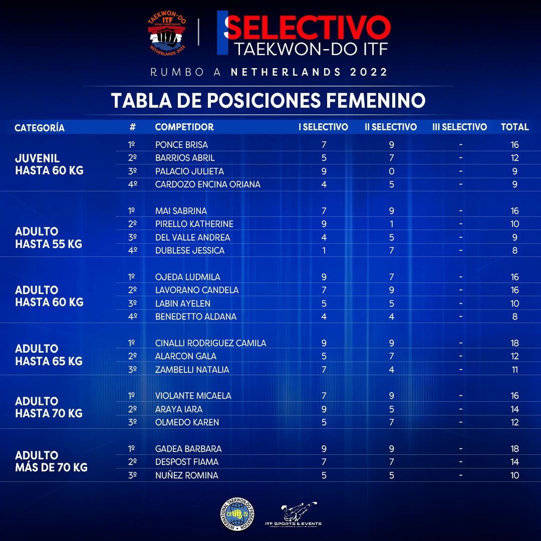 Recordar que en el caso de Pirello, quien ganó el 1er Selectivo tras vencer en la final televisada en vivo por DEPORTV, a la Tri-campeona Mundial y emblema de la Selección Argentina, la rojense Sabrina Mai, no pudo participar del 2do Selectivo debido a su operación de apéndice en la madrugada previa al 2do Selectivo como señalaramos más arriba.