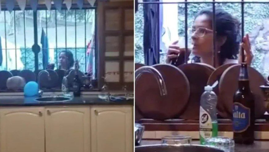En el video de Lucas, se puede ver a la mujer tomando un vaso de gaseosa, mientras disfruta del partido del otro lado de la reja. La familia se tomó muy en serio la cábala, por lo que no le quisieron abrir más la puerta.