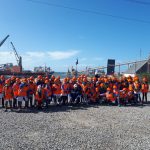 Luego, viajaron por la avenida 10, finalizando el recorrido en el Área Logística Necochea, terminal multipropósito de la estación marítima, donde pudieron conocer cada uno de los componentes de los molinos eólicos y comprender la totalidad del circuito logístico: la llegada en buques, la desestiba y el acopio a cielo abierto, la distribución hacia los parques eólicos de la región en camiones.