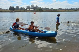 Mientras los estudiantes remaban por el Río Quequén de manera totalmente gratuita, Guadalupe Hernández, directora de Deportes de la comuna, contó que “el municipio consiguió el transporte para que puedan ir a la playa o al Polideportivo, y, en este caso, también se consiguió que participará el Club Rowing, donde tienen la posibilidad de tener su primera experiencia en un Kayak”, continuó detallando la funcionaria.