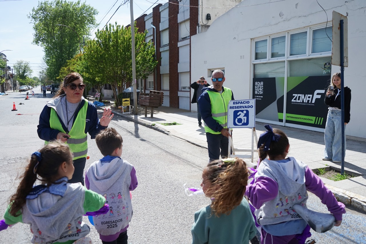 Con una vía pública ocasional desplegada sobre la calle 64, frente a la institución, fueron más de 60 los niños del Jardín Lasalle que participaron de la propuesta del Observatorio que encabeza Mariela Cellerino y depende de la Secretaría de Gobierno, a cargo de Paula Faramiñán.
