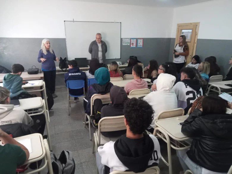 Integrantes de la asociación Civil Alfredo Marcenac, encabezados por Mónica Bouyssede brindaron charlas en las escuelas EES N°3 de Quequén y EES N°5 de Necochea, destinadas a concientizar sobre la importancia del desarme”.