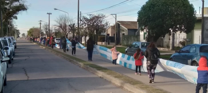 Tal como indicó Jensen, la jornada comenzó con un acto solemne dentro del edificio del jardín, donde se entonó el Himno Nacional y se brindaron palabras alusivas a la creación de nuestra enseña patria y la figura de Manuel Belgrano. Posteriormente, se realizó el recorrido habitual por las calles del barrio 9 de Julio, donde los pequeños, acompañados por docentes y familias, formaron una cadena humana que simboliza el “abrazo” a la bandera.