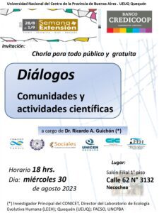 El próximo miércoles se desarrollará la charla “Diálogos; Comunidades y Actividades Científicas” a cargo del Dr. Ricardo Guichón .