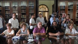 Del encuentro, que se llevó a cabo en el Ministerio de Trabajo, en La Plata, participaron el ministro de Hacienda, Pablo López; la jefa de Gabinete la cartera laboral, Cecilia Cecchini; el Subsecretario de Administración de Educación, Diego Turkenich; y los representantes del Frente de Unidad, que integran Suteba, Uteba, FEB, Sadop, AMET y Udocba.
