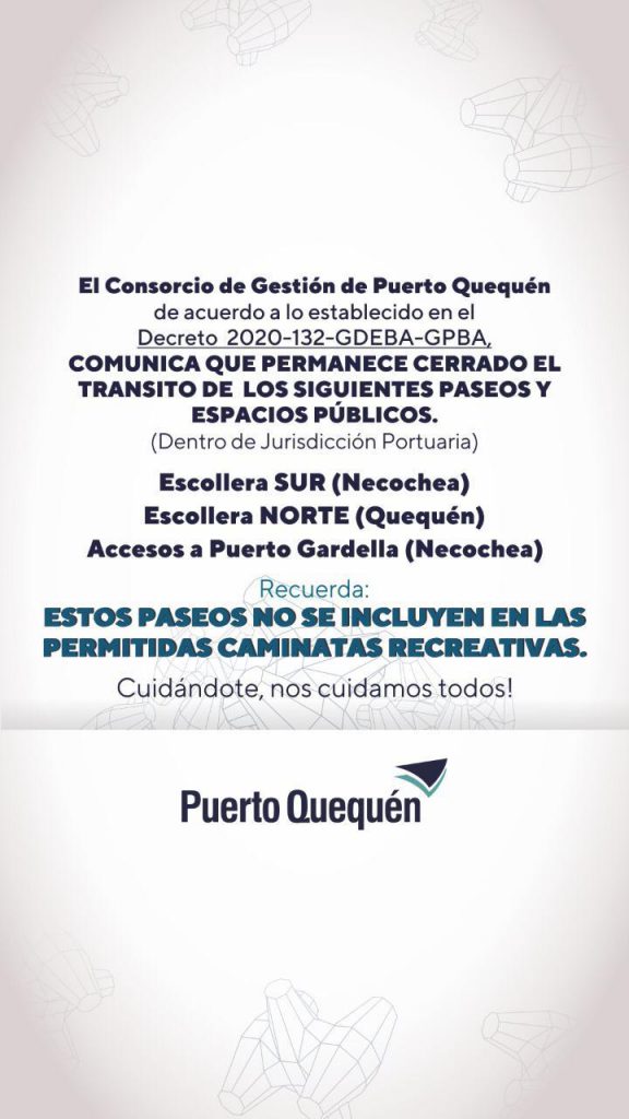 Desde el Consorcio de Gestión de Puerto Quequén informaron que las escolleras Norte y Sur de Quequén y Necochea respectivamente se encuentran cerradas.