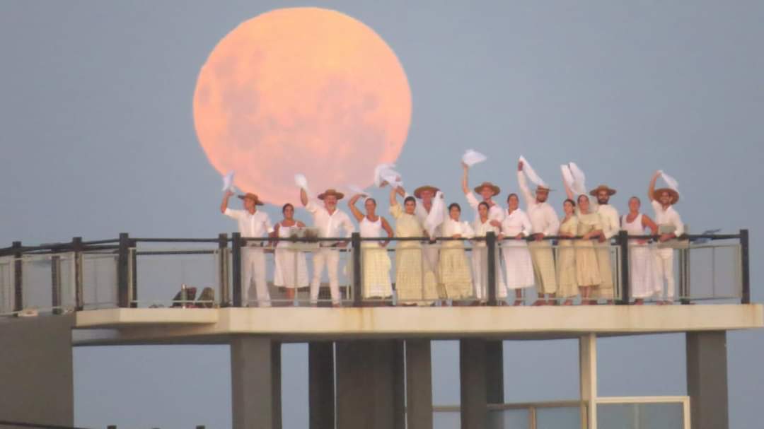 En el marco de las celebraciones por el Dia Nacional de la Zamba este 7 abril, el Ballet Folclórico Añoranzas realizó un evento dentro del ámbito de Puerto Quequén, aprovechando el maravilloso marco que daba la luna llena, danzando en el mirador de la Escollera Norte.