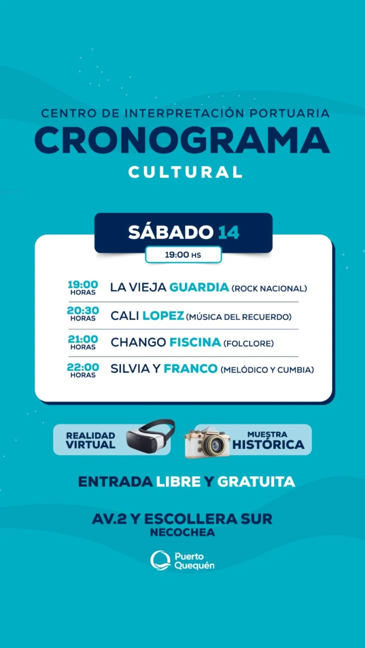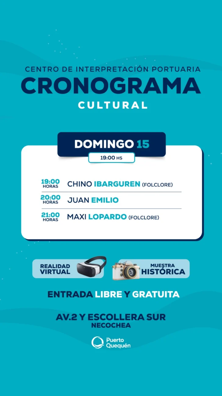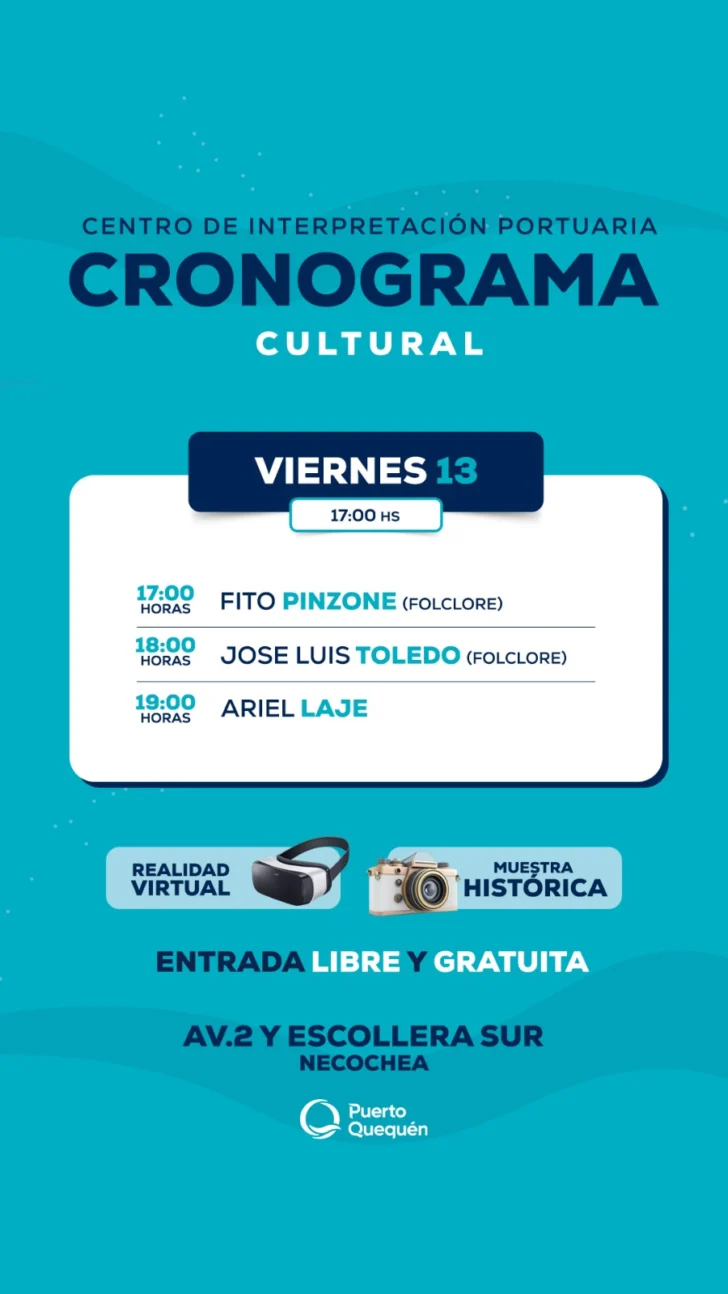 Todo el find e semana habra diversos espectáculos artísticos para todas las edades. Por eso dese el Consorcio de Gestión de Puerto Quequén se iinvita a la comunidad a disfrutar otro fin de semana en familia o con amigos