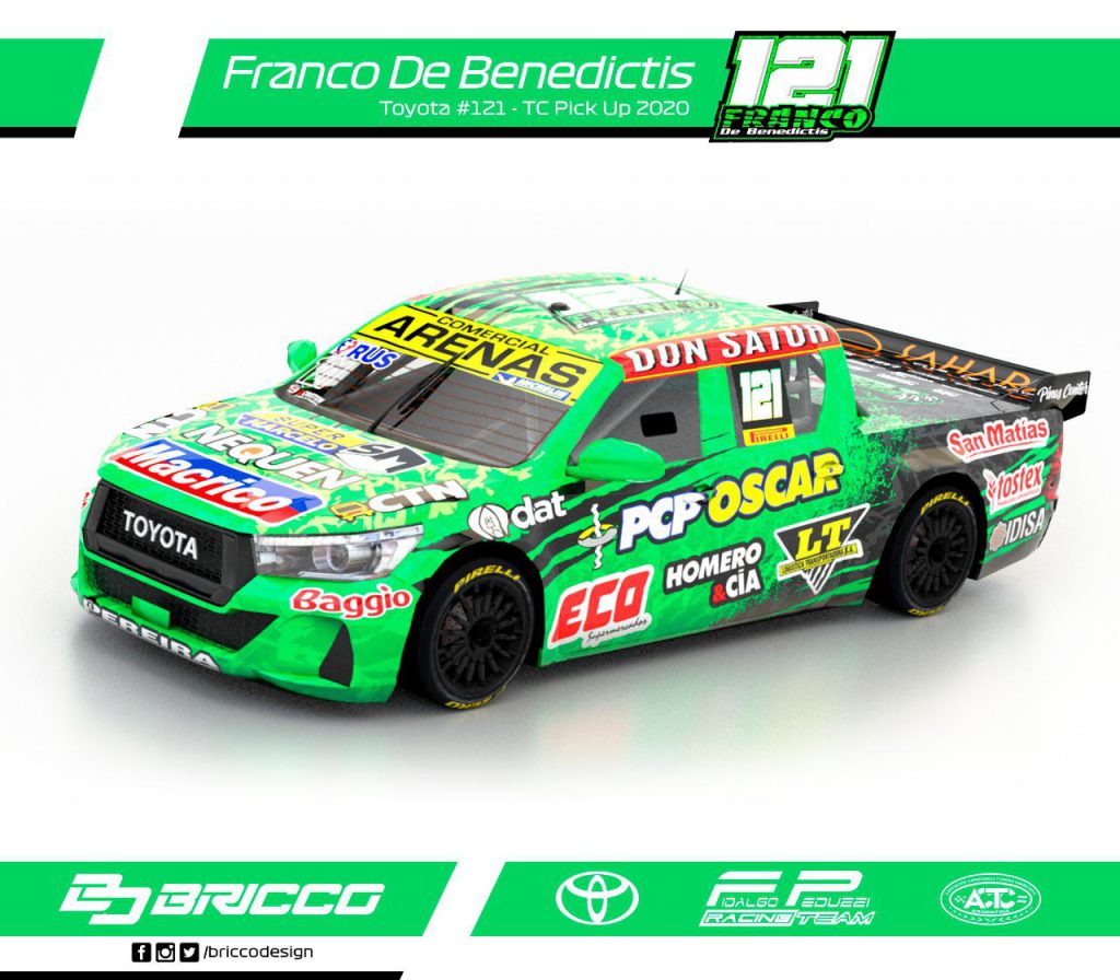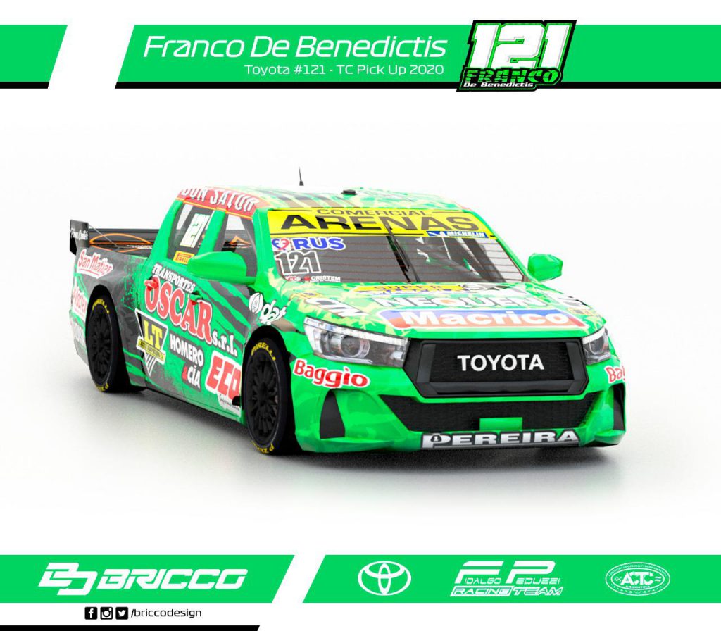 Los fanáticos en las redes sociales le solicitaban que se subiera a una Ford, ya que esta marca es la que la familia de Benedictis ha pilotado en su gran mayoría y es con la cual se identifican Juan Antonio, Juan Bautista y Franco, y aunque la Totota no es una Ford, para beneplácito de los fanas, algo de eso habrá puesto que debajo del capó de la Hilux habrá un motor del óvalo multiválvulas de alrededor 400 HP propiedad del equipo de Fidalgo Peduzzi y preparado por Rody Agut.