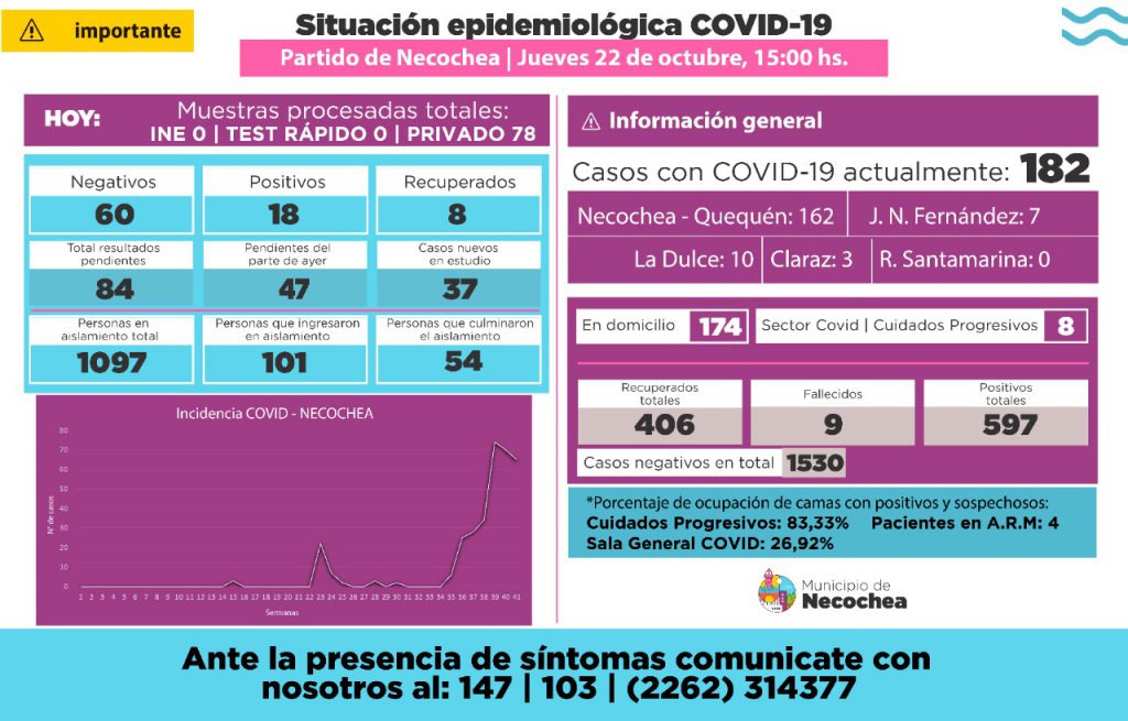 Se recuperaron 8 pacientes, con lo cual son 182 los casos activos en todo el distrito.