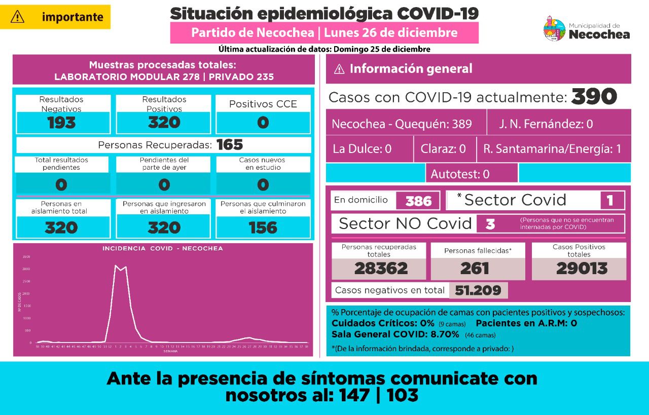 Los casos activos alcanzan 390, que corresponden todos a Necochea y Quequén, excepto uno que es de la localidad de Santamarina.