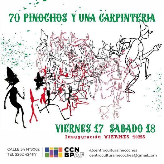 70 Pinochos y una carpintería es parte de serie de exposiciones que de la Biblioteca Popular La Chicharra con el concepto de variación y con la posibilidad de formularnos preguntas. Previamente, en septiembre de 2021, la biblioteca impulsó la muestra 70 Alicias y una maestra (Alicia en el País de las Maravillas) y en septiembre de 2022, 70 Caperucitas y una librera.