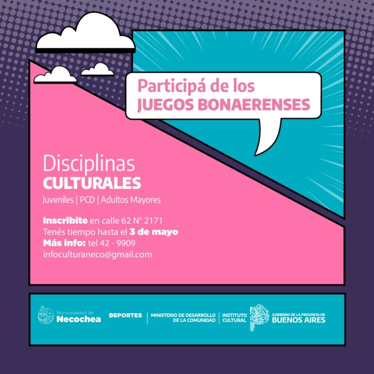 Finalmente, desde la Dirección de Cultura señalaron que la inscripción, que se puede efectuar acercándose a las oficinas del área, en calle 62 N° 2171, estará abierta hasta el próximo viernes 3 de mayo; dejando abiertas las vías de comunicación telefónica 2262 429909 y el correo electrónico infoculturaneco@gmail.com en caso de necesitar mayor información al respecto.