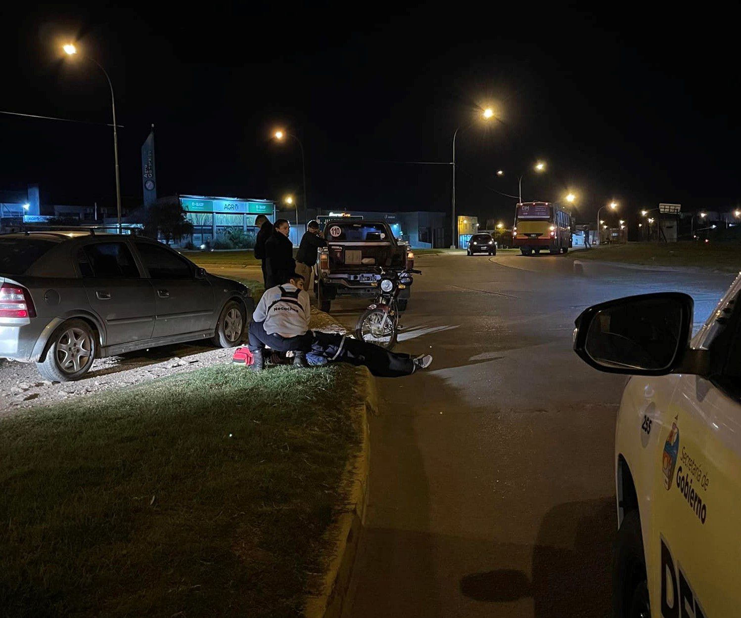 Allí un hombre perdió el control de su moto y cayó a la calzada de su moto Motomel 150cc a la salida del Puente Colgante.