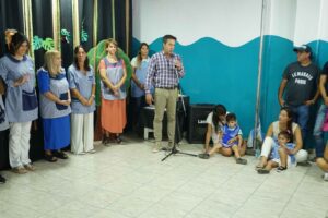 En su discurso, el jefe comunal puso de relieve “el trabajo que acá y en todas las instituciones municipales ponen a diario las docentes” para “poder cuidar lo que es lo más preciado que tenemos aquellos que somos padres que son nuestros hijos, donde no solo los cuidan sino también les enseñan a aprender jugando y compartiendo”.