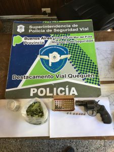 Gracias al trabajo mancomunado entre dependencias policiales, el hombre pudo ser interceptado en el ingreso a Quequén y posteriormente de el habitáculo de su camión se procedió al secuestro de un revólver calibre 32 con 7 municiones en su tambor, una caja con 32 municiones del mismo calibre y hojas de cocaína, de acuerdo a lo informado por la fuerza policial.