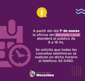 El Servicio Local ampliará desde el próximo miércoles 1º de marzo su horario de atención al público, extendiendo hasta las 16 la presencialidad en la oficina ubicada en calle 54 Nº 2942.