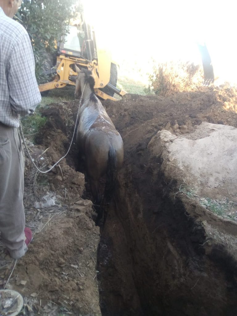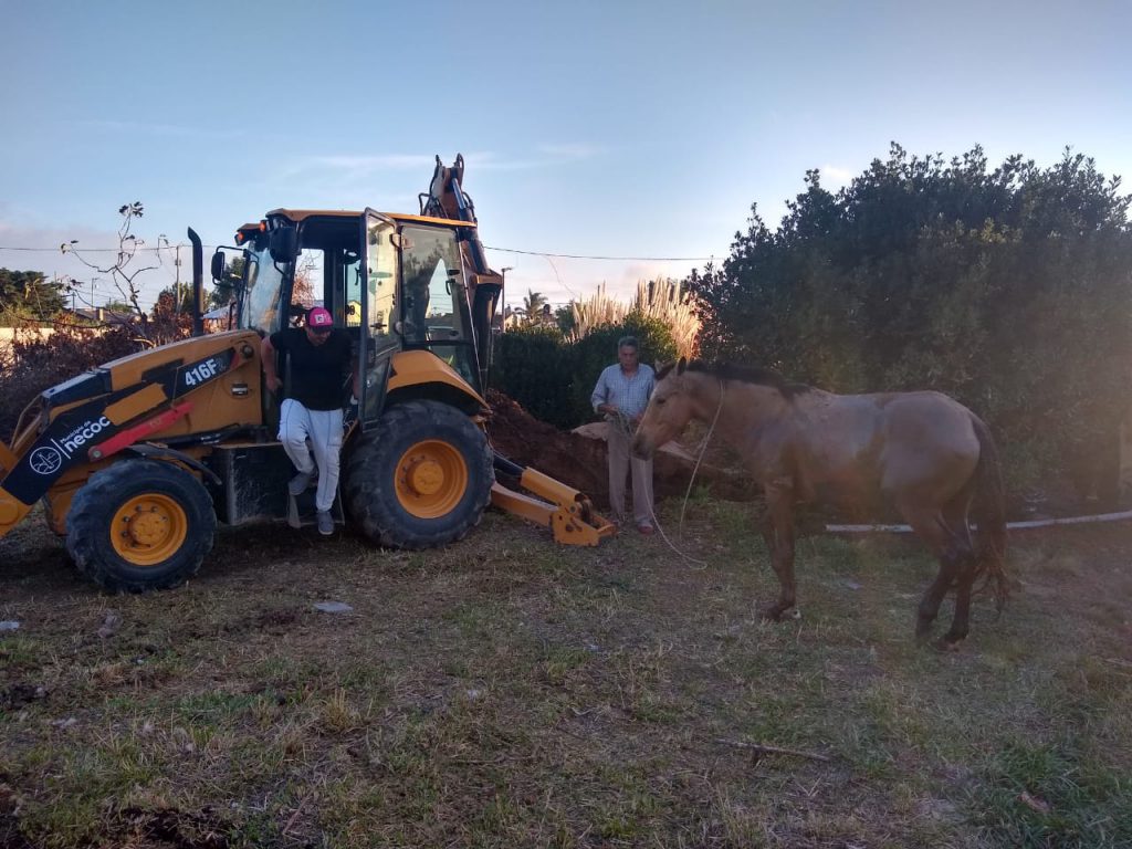 Una yegua que había caído a un pozo séptico en la tarde de este domingo pudo ser rescatada, luego de una intensa tarea, que incluyó la utilización de maquinaria pesada del municipio. El episodio se produjo en el terreno de una vivienda ubicada en 574 al 1300 de Quequén.