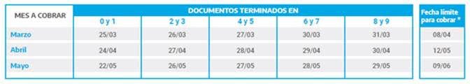El cronograma, que corresponde a los meses de marzo, abril y mayo, ya está disponible para jubilados, pensionados y beneficiarios de programas sociales.