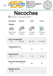 Se esperan tormentas para este domingo a la noche en Necochea.
