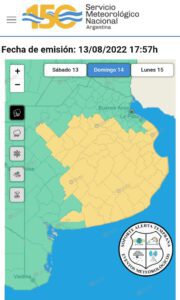En la escala de alertas, el nivel amarillo indica “posibles fenómenos meteorológicos con capacidad de daño y riesgo de interrupción momentánea de actividades cotidianas”.