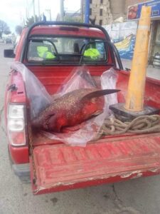 Según se indicó, se trata de un ejemplar es una hembra de 2,02 metros de largo total y de un peso aproximado de 90 kg.