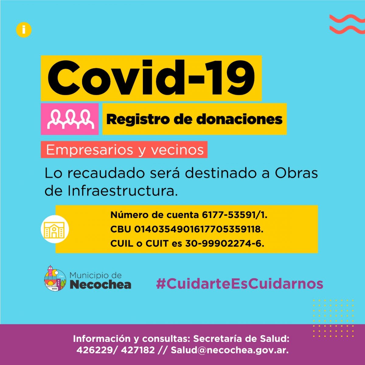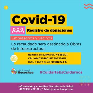 En el marco de emergencia sanitaria del distrito y del aislamiento social preventivo y obligatorio dispuesto por el gobierno nacional, en Necochea se promueven campañas para obtener fondos con el fin de garantizar el servicio de salud, procurándose hacer obras de infraestructura.