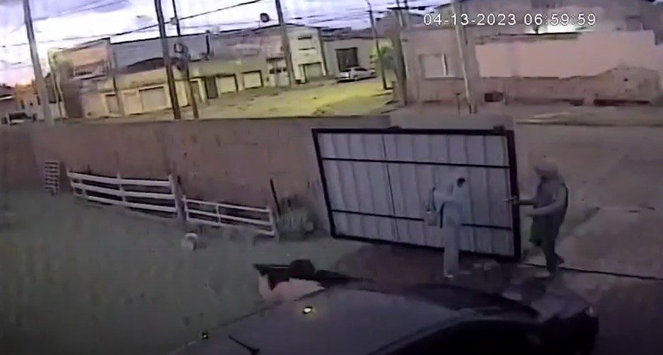 La secuencia quedó registrada por las cámaras de seguridad de la propiedad y puede observarse como el delincuente ingresa al patio donde se encontraba un pequeño esperando para ser trasladado a la escuela, aprovechando que ya el portón estaba abierto.