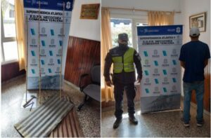 Al llegar observan a hombre que identifican como L.P, de 21 años, quien se hallaba cercando y construyendo una casilla de chapa y madera.