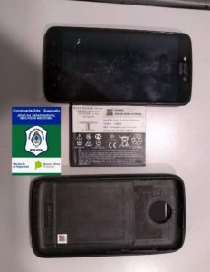 En forma conjunta con el Grupo de Apoyo Departamental (GAD), el personal policial irrumpió en el domicilio de la calle 582 al 1600 y mediante una simple maniobra, (marcan el número telefónico del abonado en cuestión al cual su celular suena rápidamente), se procedió al secuestro de un teléfono celular marca Motorola modelo XT1725 color negro con chip de la empresa Claro.