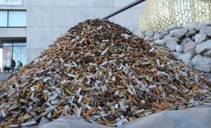 La imagen lo dice todo. Una sucia y pesada “montaña” con decenas de miles de colillas como símbolo de la mala costumbre y falta de información de los fumadores de arrojarlas al suelo, pero también como signo del fuerte nivel de contaminación que generan estos desechos y la ausencia de políticas públicas.
