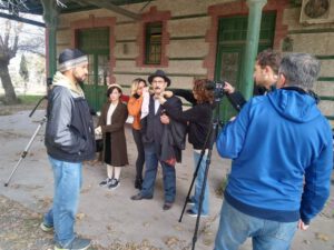 Se trata de Graciela Etcheverry y Gabriel Coria que fueron caracterizados convenientemente y aparecieron en la escena que se grabó hoy sobre el viejo andén del ferrocarril.
