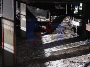 Con precauciones y cascos protectores, TsnNecochea volvió a ingresar a la parte más dañada por el humo y el hollín. Los locales ya fueron en su mayoría desalojados, pero, el tiempo, permite ver más detalles de los desastres que el siniestro provocó.