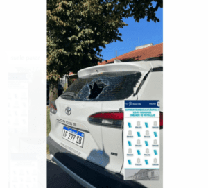 Mientras el grupo golpeaba al trabajador, una mujer que iba a bordo de un Toyota Cross chocó, sin poder evitarlo, a uno de los menores que estaba en la reyerta por lo que descendió rápidamente del vehículo para intentar socorrerlo. Sin embrago, el resto reaccionó y también la golpearon y le rompieron la luneta trasera del auto y el capot.