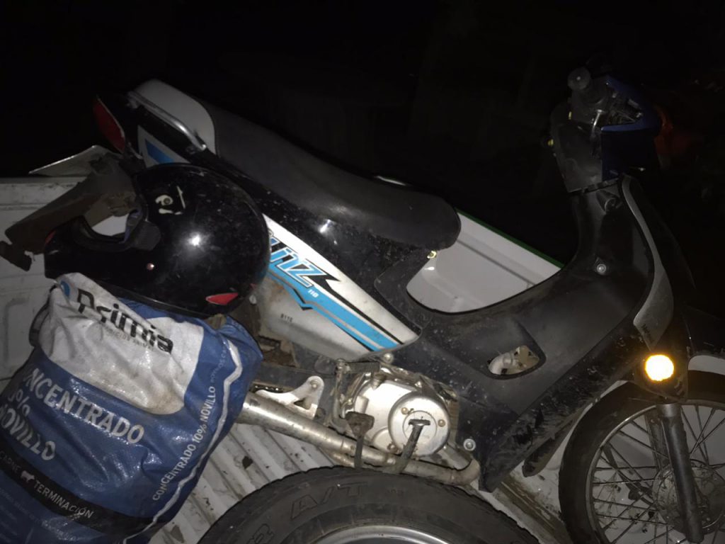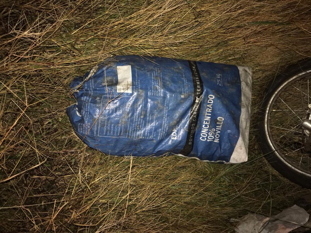 El personal policial que se hizo presente en el lugar efectuó un rastrillaje en las inmediaciones detectando la presencia de dos personas en el interior de un maizal, mientras que a pocos metros de distancia se halló una motocicleta y una bolsa de 50 kilos de papa.