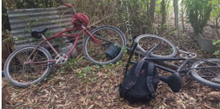 En el perímetro, la policía encontró una barreta de fierro, rollo de cables y 2 bicicletas playeras (una roja y la otra negra).