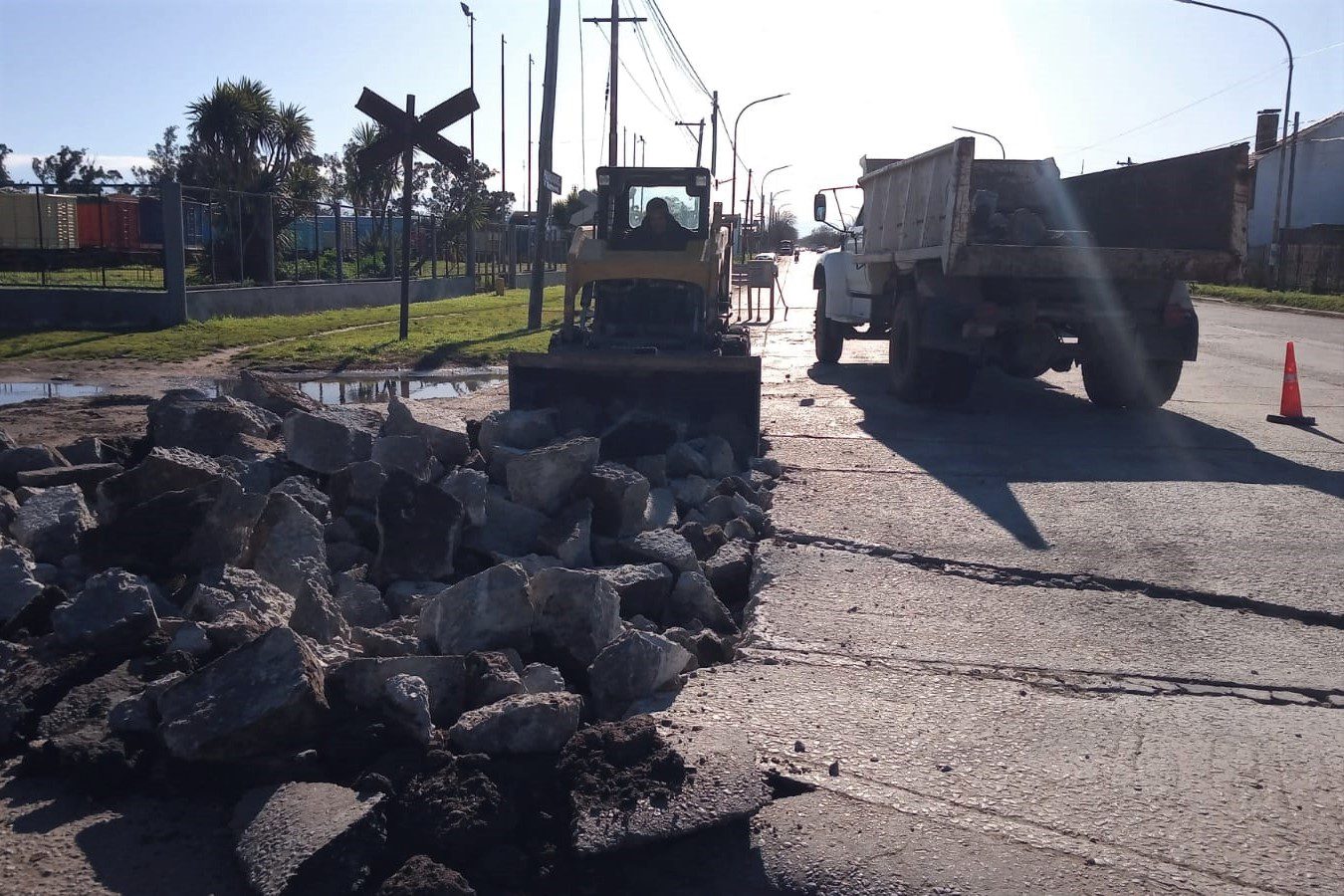 “Comenzamos con la rotura de varias losas que se bajaron con respecto al nivel de las vías y provocan un golpe cuando pasan los vehículos”, explicó Marcelo Gómez, director de Infraestructura de la comuna, al ser consultado sobre el accionar.