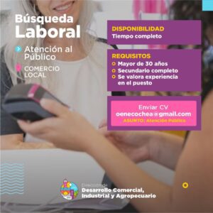 La segunda apunta a la atención al público comercial, y son requisitos tener más de 30 años y los estudios secundarios completos.