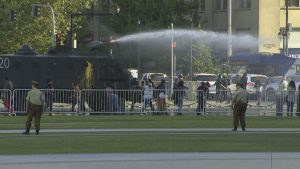 En Plaza Italia, símbolo de todas las celebraciones, carros lanza-agua y gases lacrimógenas intentan disolver las manifestaciones, aumentando la tensión con fuerzas militares y el rechazo de la ciudadanía que simplemente, dice, manifiestan su protesta frente a los abusos a cara descubierta con solo una cacerola en la mano.