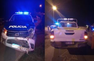 Luego de unos minutos, Ruta 88 y Circunvalación, el rodado embiste al móvil de apoyo, provocando daños el capot, guardabarros delantero, paragolpes y tren delantero, sin ocasionar lesiones a los efectivos.