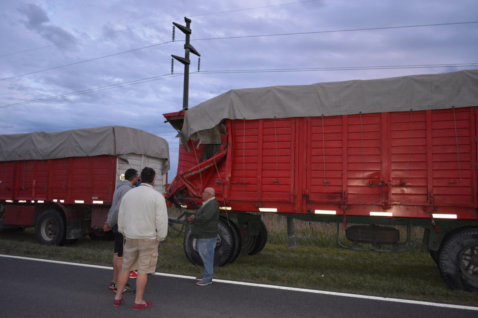 Descontrolando a ambos equipos de transporte, el de Miramar continúo su marcha por la banquina hasta que detuvo su marcha 200 metros delante de donde se produjo el accidente con algunos daños en la caja de carga delantera y las ruedas. También el acoplado en el sector izquierdo sufrió roturas, que fue donde más daño se produjo.