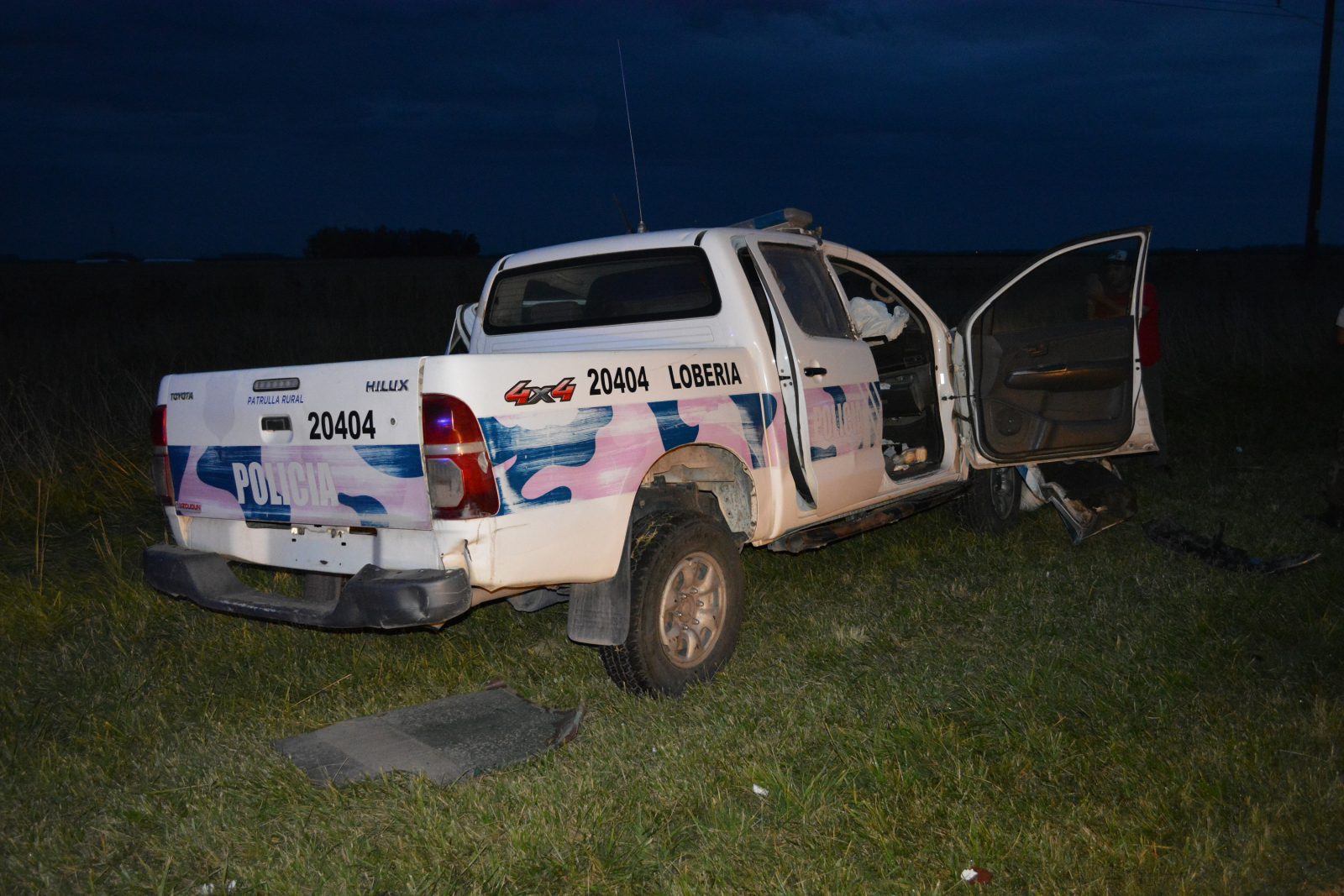 Detrás del Iveco conducido por Perreta, también en dirección Necochea-Mar del Plata, venia el móvil policial con el oficial Silvio Behotas a bordo quien no tuvo tiempo a reaccionar puesto que se vio sorprendido e impacto de lleno de manera frontal con el camión que se dirigía hacia Necochea terminando el móvil en la banquina de su mano pero apuntando en la dirección opuesta por la magnitud del golpe quedando el patrullero Toyota Hilux con serios daños.