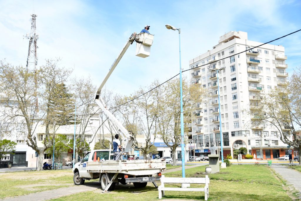Dirección de Planeamiento Energético, comenzó este mediodía a hacer el recambio de luminarias de las cuatro manzanas que conforman la Plaza Dardo Rocha, oportunidad en la que se colocarán 125 artefactos LED de nueva generación, lo que generará una inversión a la comuna de 3 millones de pesos.