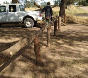 Desde la Secretaría de Obras Públicas se encuentra colocando una serie de palos en las plazoletas de la avenida 58 para evitar que suban los vehículos.