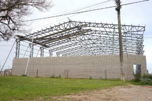A lo largo de esta semana, y más específicamente esta mañana, la empresa licitadora comenzó a trabajar en la colocación de las chapas que servirán de techo para el complejo, alcanzando a un avance de más del 60% del proyecto en su primera etapa de construcción.