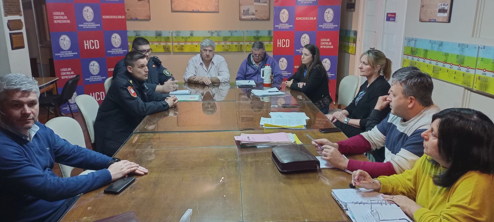 Estuvo presente la Secretaria del HCD, Silvia Jensen y los siguientes concejales: Sergio Nicolás, Bernardo Amilcar, Gabriela Espinosa, Marcelo Schwarz, Ruth Kalle (NueNec); Mauro Velázquez, Miguel Arana (FDT); Andrea Cáceres (FDT-UC); Felicitas Cabretón, (UCR); Juan Pedro Arabarco, Mariela Maceiro (ACT).