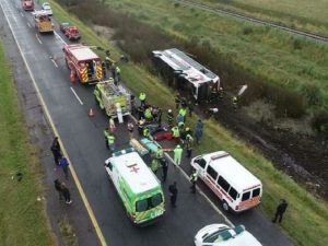 Cistoldi agregó que ya fueron concluidas “las inspecciones iniciales sobre el micro”, que volcó ayer a las 5,30 en el kilómetro 374 de la Autovía 2, en la localidad de Vivoratá, cuando iba con 54 personas a bordo, de las cuales 15 resultaron heridas.