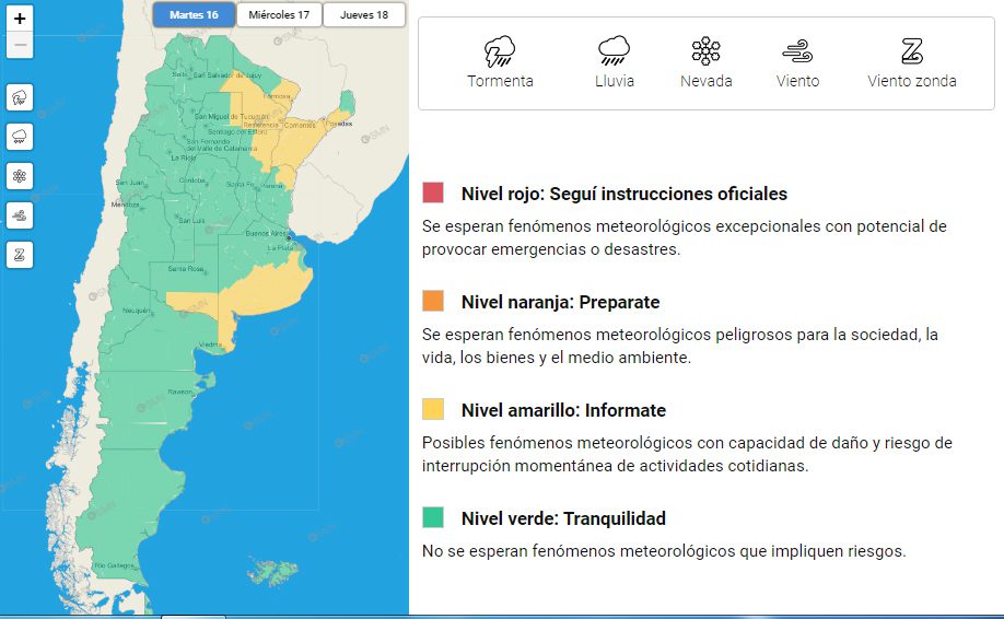 En ese sentido, el SMN precisó que se prevén valores de precipitación acumulada entre 30 y 50 milímetros, los cuales podrán ser superados localmente, especialmente en zonas costeras.
