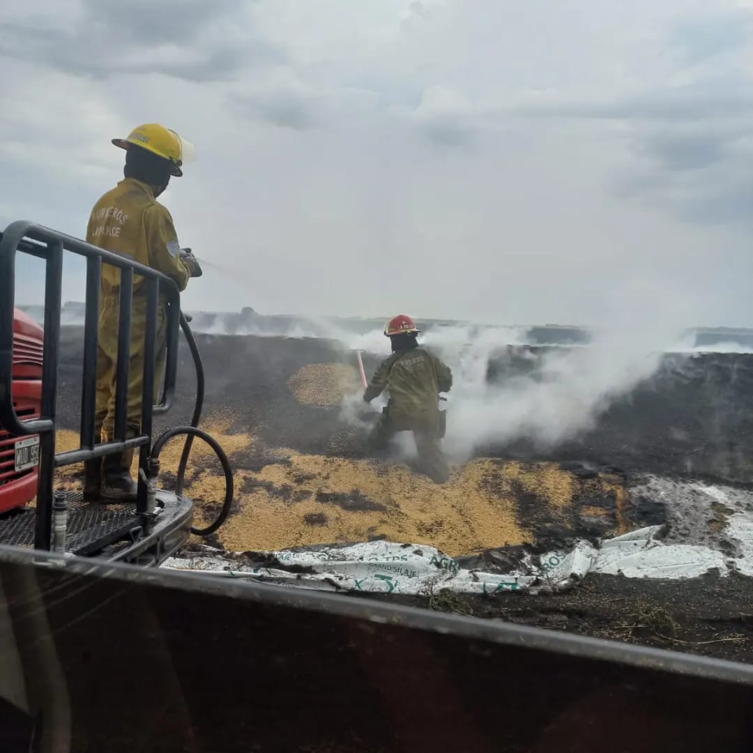El fuego se había iniciado producto de las altas temperaturas y la sequedad de los cultivos y se propagó por la superficie sembrada y los silos bolsas.